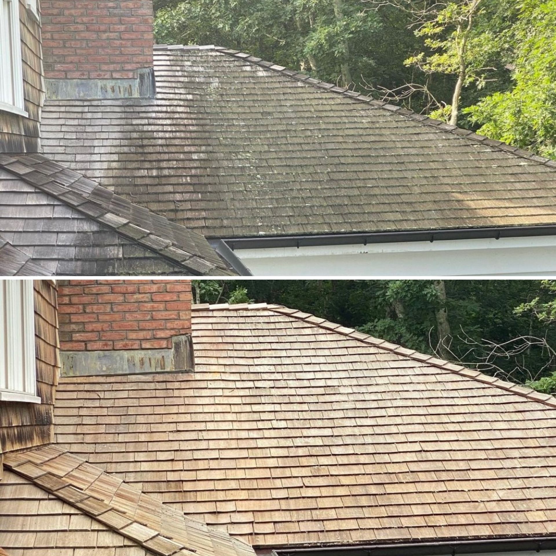 Have you ever look at a roof and said boy that's disgusting. It's covered in Black Algae, White Lichen & Green Moss like a rock in a forest. We all know that replacing a roof no matter shingles, metal or wood is expensive and messy. We all know that your roof is probably the most important part of your house as not many people like getting wet from rain or snow. If you have a problem on your roof its usually repaired immediately so no mold and mildew growth appears, pests don't show up and zero long term damages occur. These are solutions to repairing your roof but not maintaining it with a periodic Soft Wash. Did you know your roof needs to be cleaned every 5-7 years to maintain warranties? When your roof has black algae it should be Soft Washed asap. This black algae is an organism called Gloeocapsa Magma and it will continue to spread as it feeds on your shingles composition. Give it 5 years and your starting to develope advanced stages of this organism that we see as Lichen spores and Moss. When it gets to Moss you know you have a serious problem as the Moss can damage shingles and slowly ruin your roofs lifespan. Damaging a roof can happen very fast with mother nature and high pressure water. So lets protect it with a maintenance clean and get you the longest lifespan out of your roof.